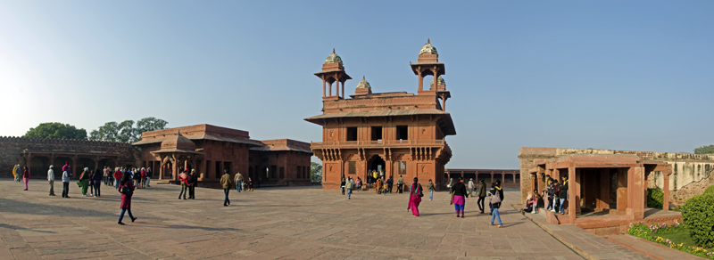 “অনুপ তালাও” একটি ছোট্ট জলাশয়। তানসেন নাকি এই সরোবরের মাঝে বাঁধানো জায়গায় বসে গান গাইতেন! জলাশয় ঘিরে বসতেন সৌভাগ্যবান শ্রোতারা – এক প্রান্তে সম্রাট আকবর – পাশে প্রাসাদের ঝরোখার আড়ালে থাকতেন যোধাবাঈ ও অন্যান্য মহিলারা। সরোবরের স্ফটিক-স্বচ্ছ জল এখন শ্যাওলায় গাঢ় সবুজ। পাঁচতলা হাওয়া মহল পেরিয়ে চত্ত্বরের অন্য পাশে “দিওয়ান-ই-খাস”। মহারাজা ও মন্ত্রীদের “খাস” বা গুপ্ত বৈঠক হত এখানে – বৈঠক অর্থাৎ ছেলেবেলায় ইতিহাস বই-এ পড়া আকবরের ‘নবরত্ন সভা’! সত্যিই বীরবল, টোডরমল, আবুল ফজল সবারই বাড়ি আজো আছে ফতেপুর সিক্রিতে।